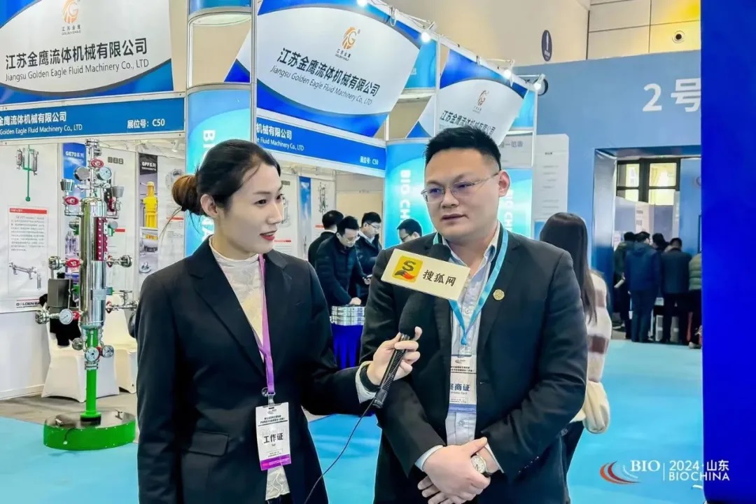 在國際生物發(fā)酵展上,江蘇金鷹剖分式機封隆重亮相,金鷹王總作為代表接受了搜狐網(wǎng)專(zhuān)訪(fǎng)報道。